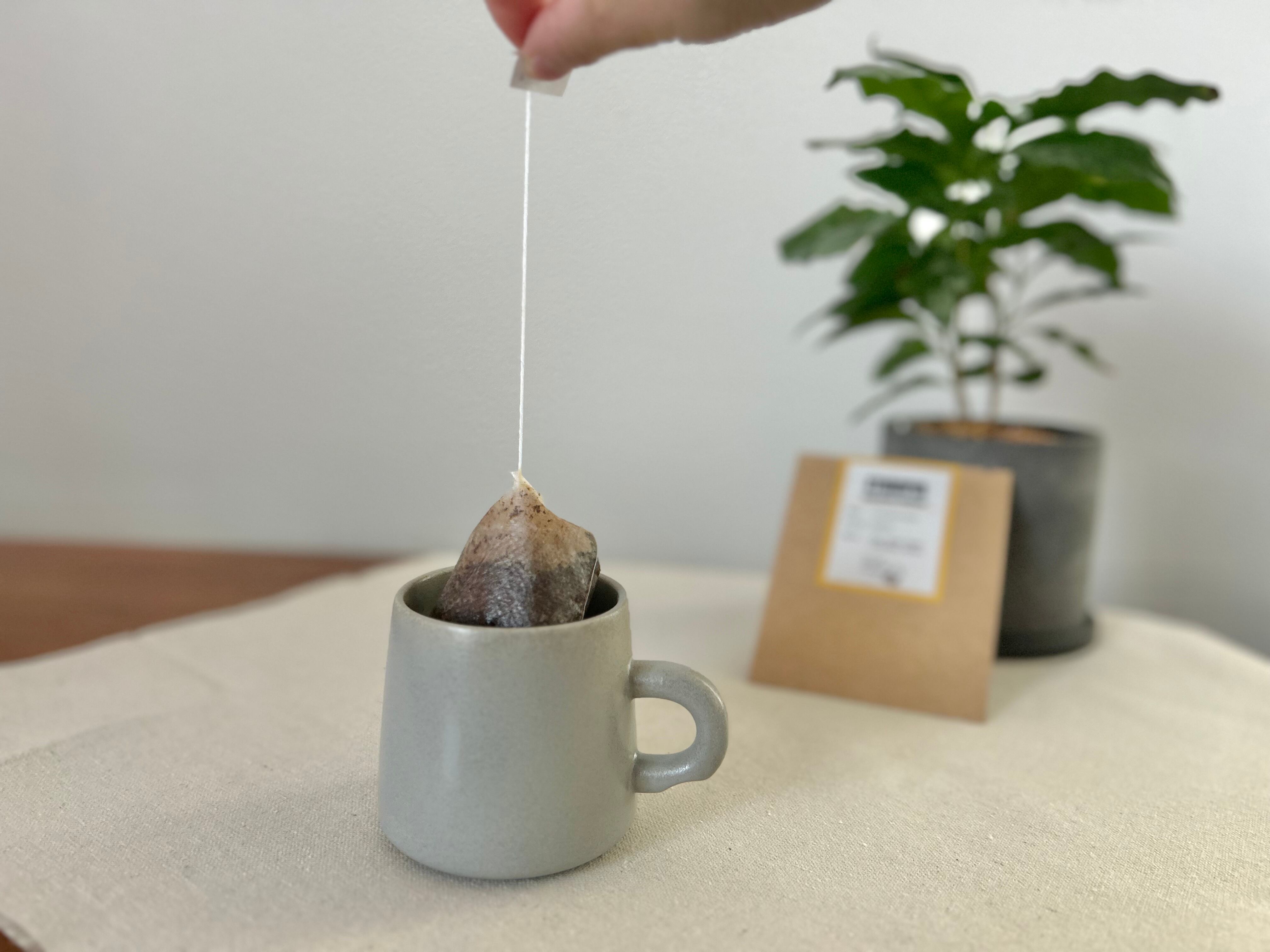 ①カップにコーヒーバッグを入れる
